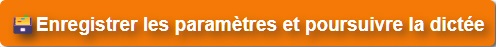 2. Réglez la vitesse (réglages possibles tout au long de l’exercice) puis cliquez sur Enregistrer les paramètres et poursuivre la dictée - (c) cours2français.net pour commencer la dictée.